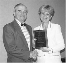 Stanley Balbach receives the Tradition of Excellence award from ISBA President Cheryl Niro. In his letter of nomination, ATG President Peter J. Birnbaum wrote: "Because of his vision, consumers in Illinois and other markets continue to enjoy access to low cost legal representation in what amounts to the largest financial transaction of their lives. Without Stan, there would be no ATG."