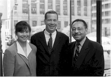 "We are extremely pleased to welcome Roland Burris as a member of our company. His impressive legal experience, combined with the many services ATG offers its members, will greatly benefit prospective home buyers." said Peter Birnbaum, ATG president and CEO, shown here with Roland Burris and Aurora Austriaco, ATG Corporate Counsel - Marketing.